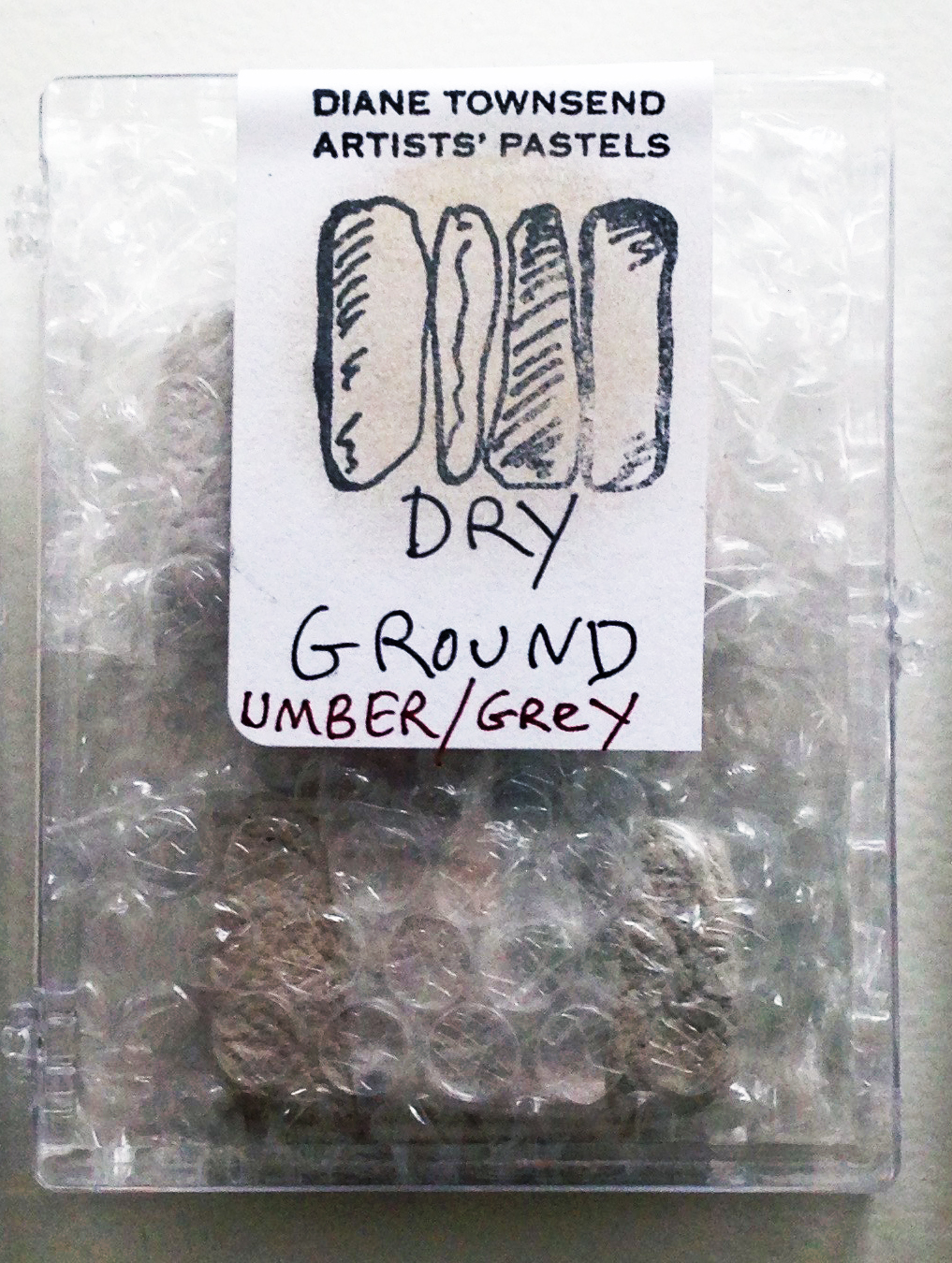 Der Dry Ground ist ein auf Bimsstein basierendes Stück Material, das auf Papier aufgetragen und mit der Hand eingerieben wird. Der Zweck eines solchen Bodens ist es, einer Oberfläche ein wenig "Geschmeidigkeit" zu verleihen. Dry Ground nimmt das Pastell auf erleichtet so die Arbeit auf mehreren Ebenen auf dem gleichen Malgrund.